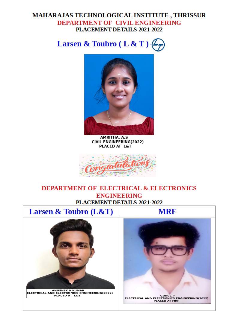 Assistant Placement Officer : Mr. Asif M T 9567911616
